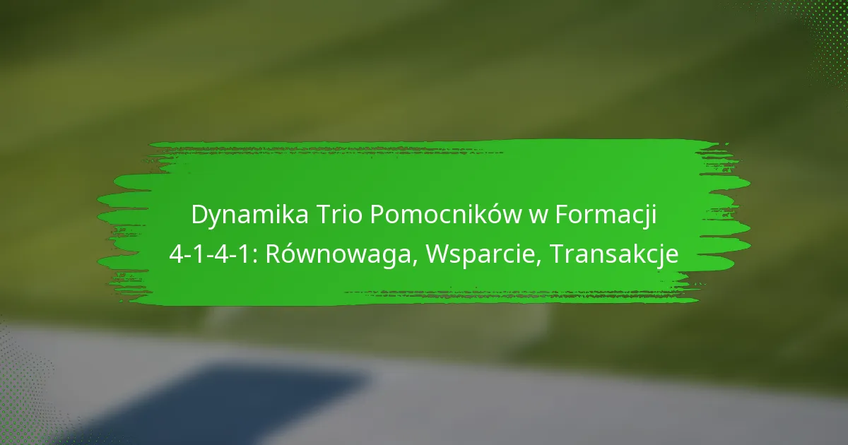 Formacja 4-1-4-1 charakteryzuje się dynamiczną trójką pomocników, która jest niezbędna do zrównoważenia odpowiedzialności defensywnych i ułatwienia akcji ofensywnych. Unikalna rola każdego pomocnika sprzyja efektywnym przejściom i utrzymaniu kontroli nad grą, zapewniając zarówno solidność defensywną, jak i płynność ofensywną. Ta koordynacja jest kluczowa dla tworzenia okazji i utrzymania struktury zespołu w różnych fazach gry.