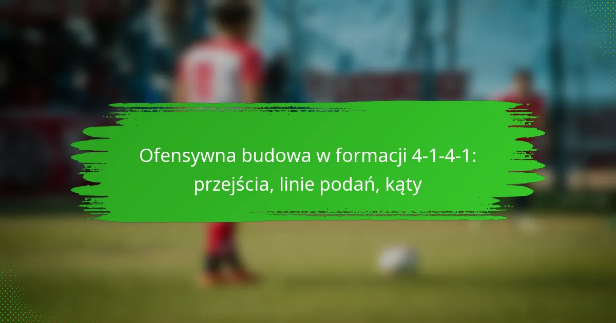 Formacja 4-1-4-1 to taktyczny układ w piłce nożnej, który łączy solidność defensywną z dynamiczną obecnością w środku pola, umożliwiając zespołom efektywne przejście między atakiem a obroną. Aby maksymalizować ofensywną budowę, zespoły muszą skupić się na strategicznym ustawieniu, szybkich przejściach oraz tworzeniu linii i kątów podań, które wykorzystują słabości defensywne. Wykorzystując te elementy, zawodnicy mogą zwiększyć swoją zdolność do utrzymania piłki i generowania okazji do strzelenia goli.